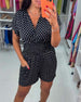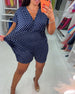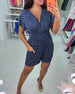 Uformell jumpsuit med prikkete trykk med V-hals og korte ermer