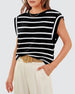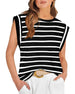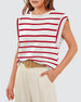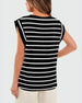 Uformell ermeløs topp med stripete trykk med rund hals