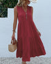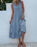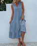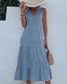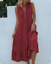 SPESIFIKASJONER Stil: Uformelt Materiale: Bomull, Polyester Kjole type: Tank Kjolens lengde: Midi Halslinje: V-hals Mønstertype: Ensfarget Erme lengde: Ermeløs Detaljer: Knapper, Rynket Passform type: Vanlig Årstid: Sommer Anledning: Daglig Pakken inkluderer: 1 x Kjole STØRRELSESTABELL (cm) Størrelse Bryst Lengde Skulder Midje ...