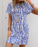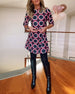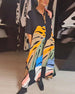 Uformell kjole med fargeblokktrykk med jakkeslag og snøring
