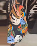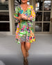 Uformell kjole med leopard og fargerikt trykk og dyp V