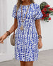 SPESIFIKASJONER Stil: Uformelt, Ferie, Elegant Materiale: 5% Spandex, 95% Polyester Kjole type: A-line Kjolens lengde: Knelengde Halslinje: V-hals Mønstertype: Trykt Ermetype: Vanlig erme Erme lengde: Kort erme Passform type: Vanlig Årstid: Vår, Sommer, Høst Anledning: Daglig, Ferie Pakken inkluderer: 1 x Kjole STØRRELSESTABELL (cm) ...