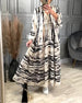 SPESIFIKASJONER Stil: Uformelt Materiale: Bomullsblandinger Kjole type: A-line Kjolens lengde: Maxi Halslinje: V-hals Mønstertype: Trykt Ermetype: Utvidet erme Erme lengde: Langermet Detaljer: Lappeverk Passform type: Løs Årstid: Vår,Sommer,Høst Anledning: Daglig Pakken inkluderer: 1 x Kjole STØRRELSESTABELL (cm) Størrelse Bryst Lengde S 9...