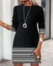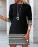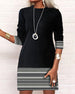 SPESIFIKASJONER Stil: Uformelt Materiale: Bomullsblandinger Kjole type: A-line Kjolens lengde: Over kneet Halslinje: Rund hals Mønstertype: Geometrisk trykk Ermetype: Vanlig erme Erme lengde: 3/4 erme Passform type: Vanlig Årstid: Vår,Høst,Vinter Anledning: Daglig Pakken inkluderer: 1 x Kjole STØRRELSESTABELL (cm) Størrelse EU Bryst Len...