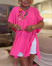 SPESIFIKASJONER Topp type: Bluser Stil: Uformelt Materiale: Bomullsblandinger Anledning: Daglig Halslinje: V-hals Mønstertype: Ensfarget Ermetype: Flaggermus erme Erme lengde: Kort erme Passform type: Vanlig Årstid: Vår,Sommer Detaljer: Snøre opp,Spalte Pakken inkluderer: 1 x Bluse STØRRELSESTABELL (cm) Størrelse Bryst Lengde S 95 65 M 1...
