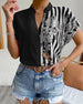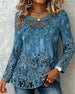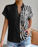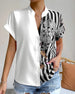 Bluse Lappearbeid Krage Og Strategisk Plassert Trykt
