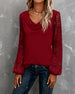 SPESIFIKASJONER Topp type: Bluser Stil: Uformelt Materiale: Bomullsblandinger Anledning: Daglig Halslinje: Drapert Krage Mønstertype: Ensfarget Ermetype: Vanlig erme Erme lengde: Langermet Passform type: Vanlig Årstid: Høst,Vinter Detaljer: Uthult,Blonder Pakken inkluderer: 1 x Bluse STØRRELSESTABELL (cm) Størrelse Bryst Lengde S 92 65 M...