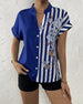 SPESIFIKASJONER Topp type: Bluser Stil: Uformelt, Forretning Anledning: Daglig, Arbeid Halslinje: V-hals Mønstertype: Fargeblokk Ermetype: Vanlig erme Erme lengde: Kort erme Passform type: Vanlig Årstid: Vår, Sommer, Høst Detaljer: Lappeverk, Knapper Materiale: Spandex, Polyester Pakken inkluderer: 1 x Bluse STØRRELSESTABELL (cm) ...