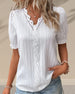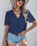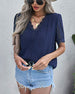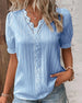 SPESIFIKASJONER Topp type: Bluser Stil: Elegant Materiale: Bomullsblandinger, Blonder Anledning: Daglig Halslinje: V-hals Mønstertype: Ensfarget Ermetype: Vanlig erme Erme lengde: Kort erme Passform type: Vanlig Årstid: Vår, Sommer, Høst Detaljer: Lappeverk, Blonder Pakken inkluderer: 1 x Bluse STØRRELSESTABELL (cm) Størrelse Brys...
