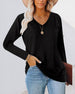 SPESIFIKASJONER Topp type: Topper Stil: Uformelt Materiale: Bomullsblandinger Anledning: Daglig Halslinje: V-hals Mønstertype: Ensfarget Ermetype: Vanlig erme Erme lengde: Langermet Passform type: Vanlig Årstid: Høst,Vinter Pakken inkluderer: 1 x Topp STØRRELSESTABELL (cm) Størrelse Bryst Midje Skulder Arm XS 84 80 33 68 S 89 85 34 69 ...