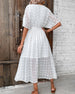 SPESIFIKASJONER Stil: Elegant Materiale: Bomullsblandinger Kjole type: A-line Kjolens lengde: Midi Halslinje: V-hals Mønstertype: Ensfarget Ermetype: Vanlig erme Erme lengde: Kort erme Detaljer: Snøre opp Passform type: Vanlig Årstid: Vår, Sommer, Høst Anledning: Daglig Pakken inkluderer: 1 x Kjole (med belte) STØRRELSESTABELL (cm) ...