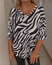 SPESIFIKASJONER Topp type: Topper Stil: Uformelt Materiale: Bomullsblandinger Anledning: Daglig Halslinje: V-hals Mønstertype: Dyre trykk Ermetype: Vanlig erme Erme lengde: 3/4 erme Passform type: Vanlig Årstid: Vår, Sommer, Høst Pakken inkluderer: 1 x Topp STØRRELSESTABELL (cm) Størrelse Bryst Lengde S 95 65 M 100 66.5 L 10...