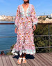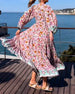 SPESIFIKASJONER Stil: Uformelt, Elegant Materiale: Bomullsblandinger Kjolens lengde: Maxi Halslinje: V-hals Mønstertype: Blomstret Ermetype: Vanlig erme Erme lengde: 3/4 erme Detaljer: Snøre opp Passform type: Vanlig Årstid: Vår, Sommer Anledning: Daglig, Ferie Pakken inkluderer: 1 x Kjole STØRRELSESTABELL (cm) Størrelse Byste(cm) Leng...