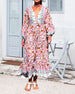 SPESIFIKASJONER Stil: Uformelt Materiale: Bomullsblandinger Kjole type: A-line Kjolens lengde: Maxi Halslinje: V-hals Mønstertype: Trykt Ermetype: Raglan erme Erme lengde: 3/4 erme Passform type: Vanlig Årstid: Vår, Sommer, Høst Anledning: Daglig Pakken inkluderer: 1 x Kjole STØRRELSESTABELL (cm) Størrelse Bryst Lengde S 95 127 ...