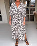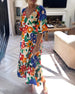 SPESIFIKASJONER Stil: Uformelt, Ferie Materiale: Bomullsblandinger Kjole type: A-line Kjolens lengde: Maxi Halslinje: V-hals Mønstertype: Trykt Ermetype: Lanterne erme Erme lengde: 3/4 erme Detaljer: Rynket Passform type: Vanlig Årstid: Vår, Sommer, Høst Anledning: Daglig, Ferie Pakken inkluderer: 1 x Kjole STØRRELSESTABELL (cm) St...