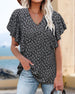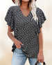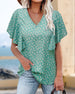 SPESIFIKASJONER Topp type: Bluser Stil: Uformelt Materiale: Spandex Anledning: Daglig Halslinje: V-hals Mønstertype: Blomstret, Trykt Ermetype: Volanger erme Erme lengde: Kort erme Passform type: Løs Årstid: Vår, Sommer, Høst Pakken inkluderer: 1 x Bluse STØRRELSESTABELL (cm) Størrelse Bryst Lengde S 100 65 M 105 66 L 110 67 ...
