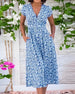 SPESIFIKASJONER Stil: Uformelt Materiale: Bomullsblandinger Kjole type: A-line Kjolens lengde: Midi Halslinje: V-hals Mønstertype: Blomstret, Trykt Ermetype: Vanlig erme Erme lengde: Halv erme Passform type: Vanlig Årstid: Vår, Sommer, Høst Anledning: Daglig Pakken inkluderer: 1 x Kjole STØRRELSESTABELL (cm) Størrelse Bryst Lengde...