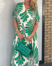 SPESIFIKASJONER Stil: Uformelt Materiale: Bomullsblandinger Kjole type: Rett Kjole Kjolens lengde: Maxi Halslinje: V-hals Mønstertype: Blader, Trykt Ermetype: Vanlig erme Erme lengde: Kort erme Detaljer: Knapper Passform type: Vanlig Årstid: Vår, Sommer, Høst Anledning: Daglig Pakken inkluderer: 1 x Kjole STØRRELSESTABELL (cm) Stø...
