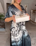 SPESIFIKASJONER Stil: Boho Materiale: Bomullsblandinger Kjole type: Rett Kjole Kjolens lengde: Midi Halslinje: V-hals Mønstertype: Trykt Ermetype: Vanlig erme Erme lengde: Halv erme Passform type: Løs Årstid: Sommer Anledning: Ferie Pakken inkluderer: 1 x Kjole STØRRELSESTABELL (cm) Størrelse Bryst Lengde S 95 120 M 100 121.5 L 105 123...