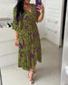 SPESIFIKASJONER Stil: Uformelt Materiale: 97% Polyester, 3% Spandex Kjole type: A-line Kjolens lengde: Midi Halslinje: V-hals Mønstertype: Trykt Ermetype: Vanlig erme Erme lengde: 3/4 erme Detaljer: Snøre opp,Rynket Passform type: Vanlig Årstid: Vår,Sommer Anledning: Daglig Pakken inkluderer: 1 x Kjole STØRRELSESTABELL (cm) Størrel...