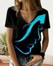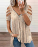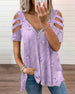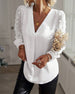 V-hals T-skjorter Med Puntillistning Patchwork Og Lykt Ärmar