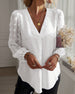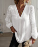 SPESIFIKASJONER Topp type: Bluser Stil: Elegant Materiale: Bomullsblandinger Anledning: Daglig,Ferie,Arbeid Halslinje: V-hals Mønstertype: Ensfarget Ermetype: Pufferme Erme lengde: Langermet Passform type: Vanlig Årstid: Vår,Sommer,Høst Detaljer: Lappeverk,Blonder Pakken inkluderer: 1 x Bluse STØRRELSESTABELL (cm) Størrelse Bryst Lengde S ...