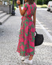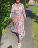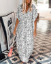 SPESIFIKASJONER Stil: Uformelt Materiale: 100% Polyester Kjole type: Rett Kjole Kjolens lengde: Maxi Halslinje: V-hals Mønstertype: Trykt Ermetype: Vanlig erme Erme lengde: 3/4 erme Detaljer: Knapper, Rynket Passform type: Løs Årstid: Sommer Anledning: Daglig Pakken inkluderer: 1 x Kjole STØRRELSESTABELL (cm) Størrelse Bryst Len...