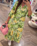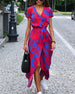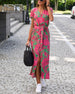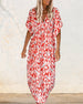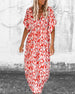 SPESIFIKASJONER Stil: Uformelt Materiale: 3% Spandex, 97% Polyester Kjole type: A-line Kjolens lengde: Maxi Halslinje: V-hals Mønstertype: Blader Ermetype: Vanlig erme Erme lengde: Halv erme Detaljer: Knapper, Rynket Passform type: Vanlig Årstid: Vår, Sommer Anledning: Daglig Pakken inkluderer: 1 x Kjole STØRRELSESTABELL (cm) St...