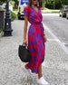 SPESIFIKASJONER Stil: Elegant Materiale: Bomullsblandinger Kjole type: A-line Kjolens lengde: Midi Halslinje: V-hals Mønstertype: Trykt Ermetype: Vanlig erme Erme lengde: Kort erme Detaljer: Snøre opp, Spalte Passform type: Vanlig Årstid: Vår, Sommer, Høst Anledning: Daglig Pakken inkluderer: 1 x Kjole STØRRELSESTABELL (cm) Størr...