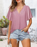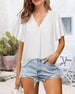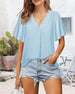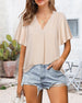 SPESIFIKASJONER Topp type: Bluser Stil: Uformelt, Forretning Materiale: Bomull, Chiffon, Polyester Anledning: Daglig, Arbeid Halslinje: V-hals Mønstertype: Ensfarget Ermetype: Volanger erme Erme lengde: Kort erme Passform type: Løs Årstid: Sommer Detaljer: Rynket Pakken inkluderer: 1 x Bluse STØRRELSESTABELL (cm) Størrelse Bryst(c...