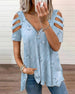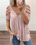 V-hals Topp med 3/4 Erme og Knapper på Ryggen