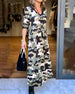 V-hals-kjole med kamuflasjetrykk
