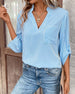 SPESIFIKASJONER Topp type: Bluser Stil: Uformelt Anledning: Daglig Halslinje: V-hals Mønstertype: Ensfarget Ermetype: Lanterne erme Erme lengde: Langermet Passform type: Vanlig Materiale: Polyester Årstid: Vår, Sommer, Høst Detaljer: Rynket Pakken inkluderer: 1 x Bluse STØRRELSESTABELL (cm) Størrelse Bryst Lengde Arm S 108 74 72...
