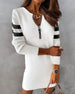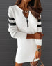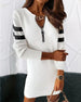 SPESIFIKASJONER Stil: Uformelt Materiale: Bomullsblandinger Kjole type: Shift-dress kjole Kjolens lengde: Over kneet Halslinje: V-hals Mønstertype: Stripe Ermetype: Vanlig erme Erme lengde: Langermet Detaljer: Glidelås Passform type: Vanlig Årstid: Vår, Høst Anledning: Daglig Pakken inkluderer: 1 x Kjole STØRRELSESTABELL (cm) Stør...