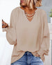 SPESIFIKASJONER Topp type: Topper Stil: Uformelt Materiale: Bomullsblandinger Anledning: Daglig Halslinje: V-hals Mønstertype: Ensfarget Ermetype: Vanlig erme Erme lengde: Langermet Passform type: Vanlig Årstid: Høst,Vinter Detaljer: Spalte Pakken inkluderer: 1 x Topp STØRRELSESTABELL (cm) Størrelse Bryst Lengde S 97 68 M 101 69.5 L 10...