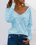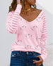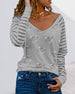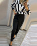 V-hals, stripete print casual bluse