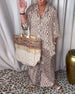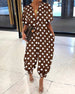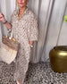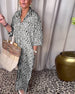 SPESIFIKASJONER Stil: Uformelt Topp type: Topper Materiale: Bomullsblandinger Mønstertype: Trykt Halslinje: Krage Ermetype: Vanlig erme Erme lengde: 3/4 erme Bukse type: Bredt ben Bukselengde: Lang Midje type: Midt i midjen Passform type: Vanlig Årstid: Vår,Sommer Detaljer: Lomme,Glidelås Anledning: Daglig Pakken inkluderer: 1 x Topp, 1 x Buks...