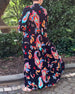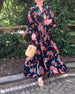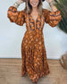 Vintage kjole med blomstermønster med V-hals og lanterneerme