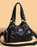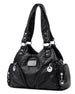 TREKK Tidløs eleganse: Hev stilen din med Vintage Soft Leather Handbag Messenger Bag. Laget av slitesterkt PU-materiale, gir dens klassiske motorsykkelveskedesign et snev av vintage sjarm til utseendet ditt. Uanstrengt funksjonell: Denne vesken ser ikke bare bra ut – den er også designet for praktisk. Med flere innvendige lommer inkludert gli...