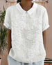 SPESIFIKASJONER Topp type: Bluser Stil: Uformelt, Elegant Materiale: Bomullsblandinger Anledning: Daglig, Ferie Halslinje: Rund hals Mønstertype: Ensfarget Ermetype: Vanlig erme Erme lengde: 3/4 erme Passform type: Vanlig Årstid: Vår, Sommer Detaljer: Blonder Pakken inkluderer: 1 x Bluse STØRRELSESTABELL (cm) Størrelse Bryst Lengde S ...