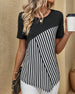 SPESIFIKASJONER Topp type: Bluser Stil: Uformelt Materiale: Bomullsblandinger Anledning: Daglig Halslinje: Rund hals Mønstertype: Stripete,Fargeblokk Ermetype: Vanlig erme Erme lengde: Kort erme Passform type: Vanlig Årstid: Sommer Pakken inkluderer: 1 x Bluse STØRRELSESTABELL (cm) Størrelse Bryst Lengde S 95 68 M 100 69.5 L 105 71 X...