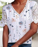 SPESIFIKASJONER Topp type: Bluser Stil: Uformelt, Elegant, Cottagecore Materiale: Bomullsblandinger Anledning: Daglig, Ferie Halslinje: V-hals Mønstertype: Blomstret Ermetype: Vanlig erme Erme lengde: Kort erme Passform type: Vanlig Årstid: Vår, Sommer Detaljer: Blonder Pakken inkluderer: 1 x Bluse STØRRELSESTABELL (cm) Størrelse Bryst ...
