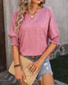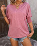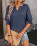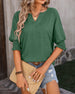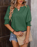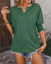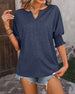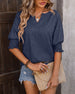 SPESIFIKASJONER Topp type: Bluser Stil: Elegant Materiale: 3% Spandex, 97% Polyester Anledning: Daglig Halslinje: V-hals Ermetype: Utvidet erme Erme lengde: 3/4 erme Passform type: Vanlig Årstid: Vår, Sommer, Høst Detaljer: Lappeverk, Knapper Pakken inkluderer: 1 x Bluse STØRRELSESTABELL (cm) Størrelse Bryst Front lengde Ryggle...