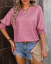 SPESIFIKASJONER Topp type: Bluser Stil: Uformelt, Elegant Materiale: 100% Polyester Anledning: Daglig, Ferie Halslinje: V-hals Ermetype: Vanlig erme Erme lengde: Kort erme Passform type: Vanlig Årstid: Vår, Sommer Pakken inkluderer: 1 x Bluse STØRRELSESTABELL (cm) Størrelse Bryst Lengde Raglanermer S 95 65 29 M 100 66.5 30 L ...