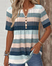 SPESIFIKASJONER Topp type: Bluser Stil: Uformelt Materiale: Bomullsblandinger Anledning: Daglig Halslinje: V-hals Mønstertype: Stripete,Fargeblokk Ermetype: Vanlig erme Erme lengde: Kort erme Passform type: Vanlig Årstid: Vår,Sommer Detaljer: Knapper,Rynket Pakken inkluderer: 1 x Bluse STØRRELSESTABELL (cm) Størrelse Bryst Lengde S 97 65 ...