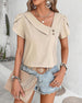 SPESIFIKASJONER Topp type: Bluser Stil: Uformelt Materiale: Bomullsblandinger Anledning: Daglig Halslinje: Skråkrage Mønstertype: Ensfarget Ermetype: Kronbladserme Erme lengde: Kort erme Passform type: Vanlig Årstid: Vår,Sommer Detaljer: Knapper Pakken inkluderer: 1 x Bluse STØRRELSESTABELL (cm) Størrelse Bryst Lengde S 97 65 M 101 66.5 ...