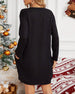 SPESIFIKASJONER Stil: Uformelt Materiale: Bomullsblandinger Kjole type: Rett Kjole Kjolens lengde: Over kneet Halslinje: Rund hals Mønstertype: Ensfarget Ermetype: Vanlig erme Erme lengde: Langermet Detaljer: Lomme Passform type: Løs Årstid: Høst, Vinter Anledning: Daglig, Arbeid Pakken inkluderer: 1 x Kjole STØRRELSESTABELL (cm) Større...