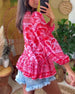 Dyp V-bluse med blomstertrykk