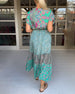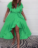 SPESIFIKASJONER Stil: Elegant, Fest Materiale: Bomullsblandinger Kjole type: A-line Kjolens lengde: Maxi Halslinje: V-hals Mønstertype: Trykt Ermetype: Volanger erme Erme lengde: Kort erme Detaljer: Snøre opp, Spalte Passform type: Vanlig Årstid: Vår, Sommer, Høst Anledning: Daglig, Parti Pakken inkluderer: 1 x Kjole STØRRELSESTABELL (cm) St...