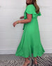 SPESIFIKASJONER Stil: Elegant Materiale: Bomullsblandinger Kjole type: A-line Kjolens lengde: Midi Halslinje: V-hals Mønstertype: Ensfarget Ermetype: Volanger erme Erme lengde: Kort erme Detaljer: Lappeverk,Snøre opp,Rufsete Passform type: Vanlig Årstid: Vår,Sommer,Høst Anledning: Daglig Pakken inkluderer: 1 x Kjole STØRRELSESTABELL (cm) Stø...